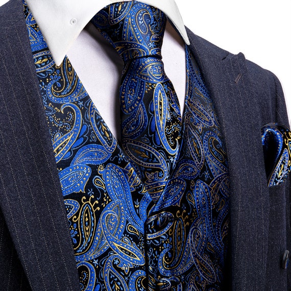 Blaue Herren Weste Paisley Floral Armellose Weste Anzug Etsy Osterreich