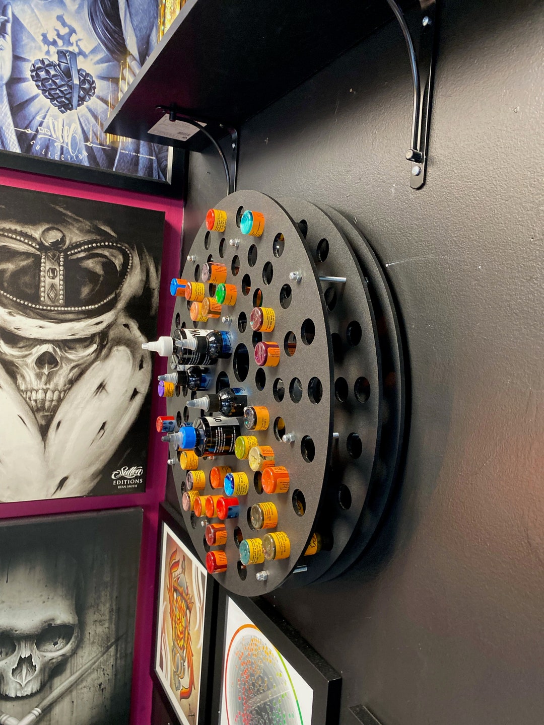 Tattoo Ink Wheel Wall Mounted Rotating Holds 80 1oz Tattoo Etsy Uk