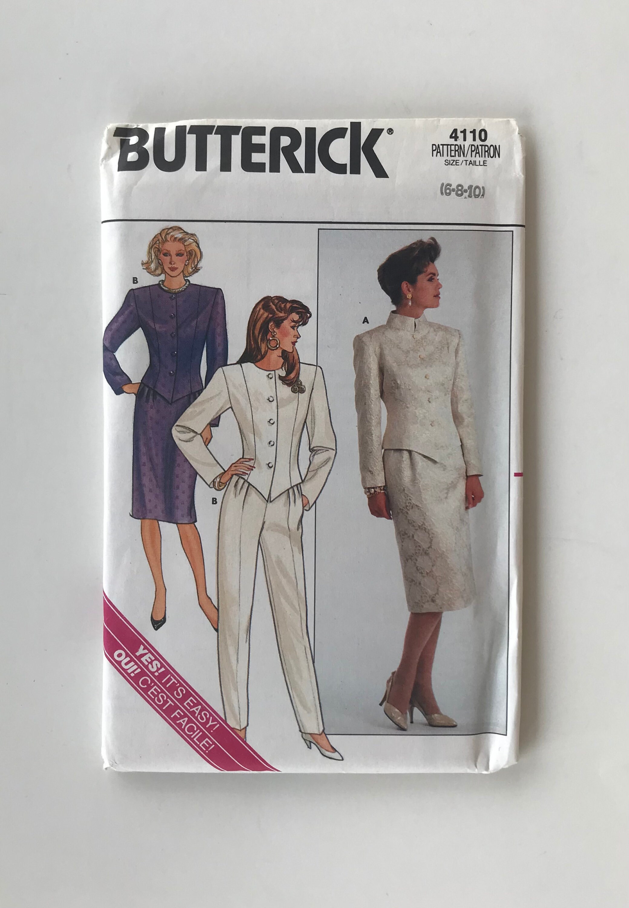 80s Women Suit Butterick 4110 Sewing Pattern Mandarin Etsy Uk